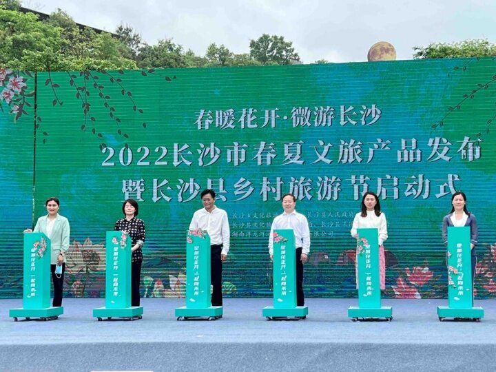 4月27日,由长沙市文化旅游广电局、长沙县政府主办的“春暖花开·微游长沙”2022长沙市春夏文旅产品发布暨长沙县乡村旅游节启动式在长沙县果园镇浔龙河樱花谷举行。