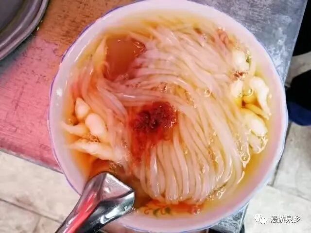 精选的成年豌豆配上各种香料,经过炒制、研磨、取粉等几道工序,便可以得到一份香气四溢的豆汤面粉,食用时,只需取适量的豆汤面粉加入筒骨汤或鸡汤中加以调制,再配上华宁人独爱的米线,加上简单的酸菜、芫茜等调料,一碗美味的豆汤米线就完成了。