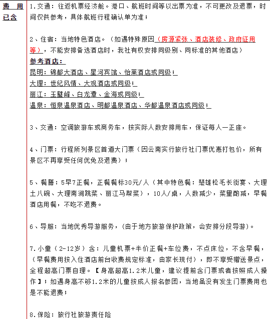 《2021年旅行社云南旅游产品参考成本消费提示》