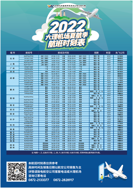 2022年夏航季航班时刻表