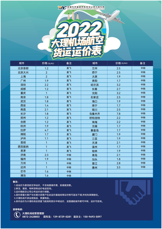 2022年夏航季货运运价表