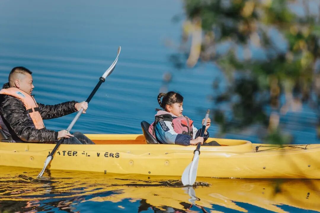 水花的一片大湖,是天然的皮划艇体验基地。沿弯弯曲曲的湖水泛舟,两侧芦苇掩映,穿过小桥、绕过小岛,邂逅白鹭、野鸭,各种可爱小生灵。和家人一起用不一样的视角感受大理风景,还能掌握必备划船技能。