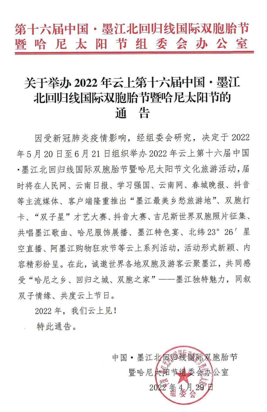 第十六届中国▪墨江北回归线国际双胞胎节暨哈尼太阳节