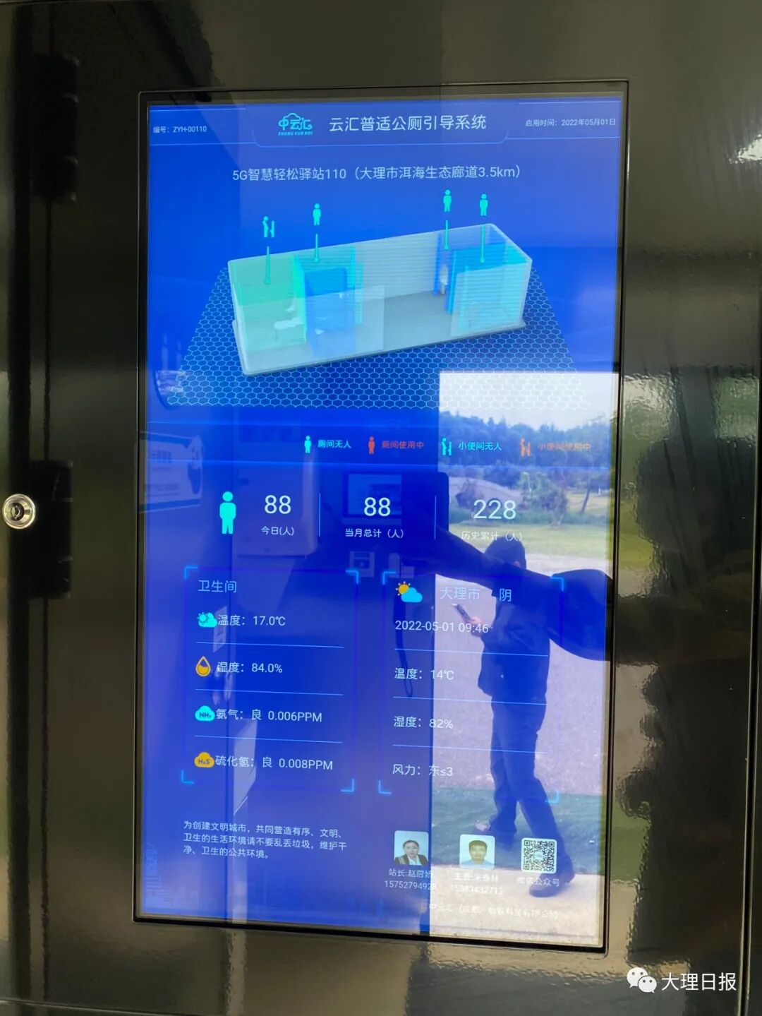 据悉,智慧“碳中和”公厕能有助于水资源的节约、污染物排放的减量,同时解决了公厕建造选址难、土地指标难、管网建设难、管网清淤难、管网异味根治难等痛点问题,有力助推洱海保护和数字大理建设。目前,大理州共引进了2台“5G智慧轻松驿站”,另外一台放置于洱海生态廊道4.5公里处。若使用反响好,大理州将计划在全州范围内推广使用。