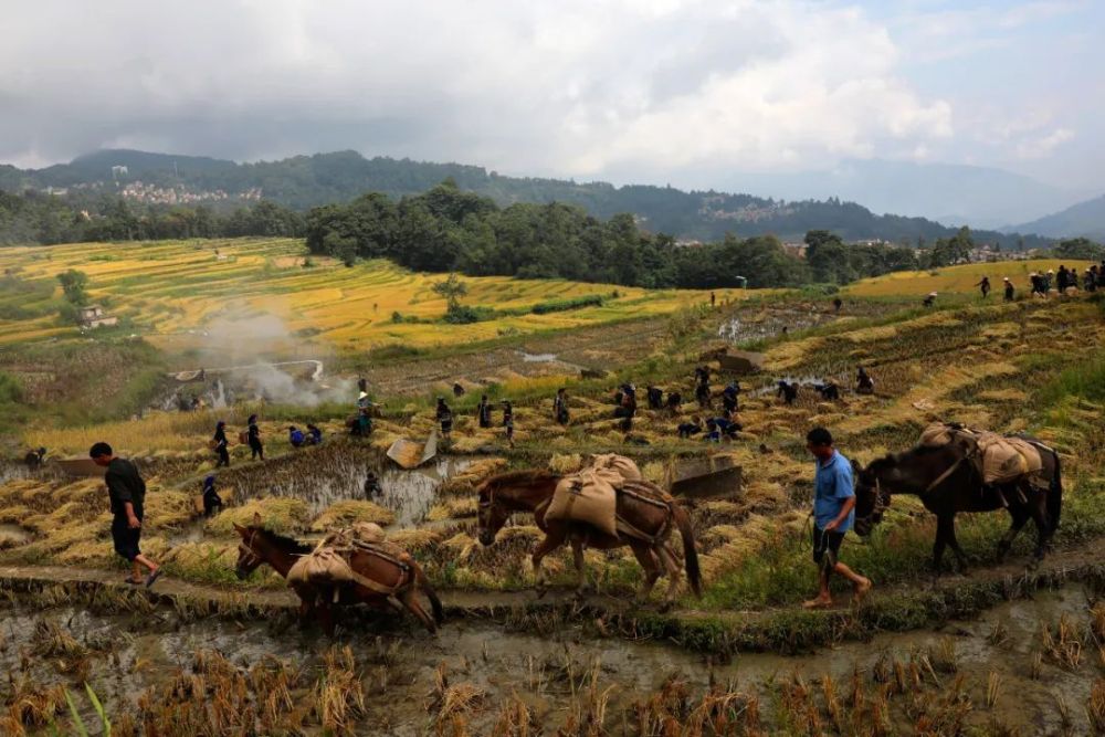 进入9月,梯田里的9万多亩稻子日渐成熟,田中稻浪滚滚,稻香阵阵,村民们相聚在梯田间,推着谷船开始了收割,一幅丰收画卷正徐徐展开。近年来元阳梯田红米的产量越来越高,因其生态绿色的品质颇受青睐,红米品牌也宣传到了外地,更多人认识了红米产品。