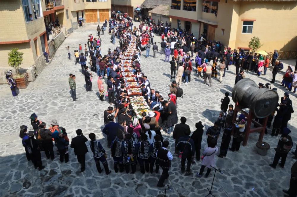 好客的哈尼人家家户户拼起长桌,摆上美酒佳肴,喜迎八方宾客。(资料图片)