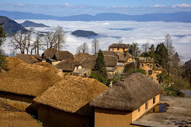 清晨的阿者科,田间云海无声翻涌,蘑菇房静静屹立。(资料图片)
