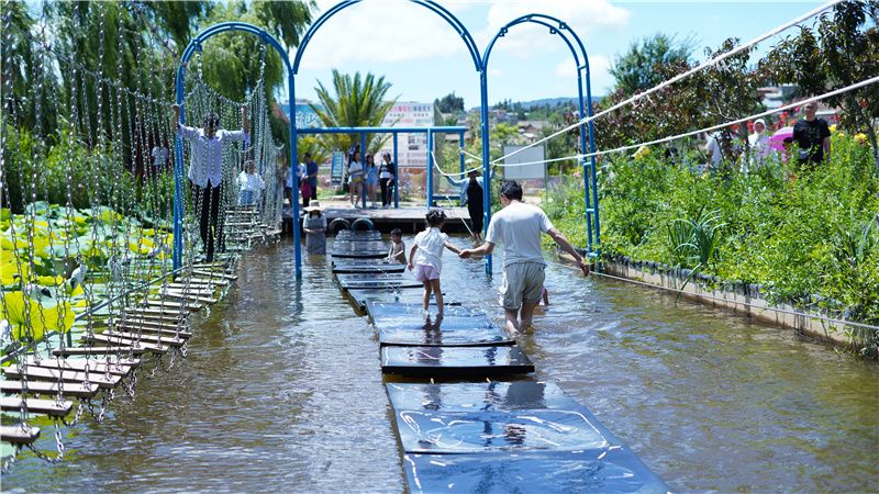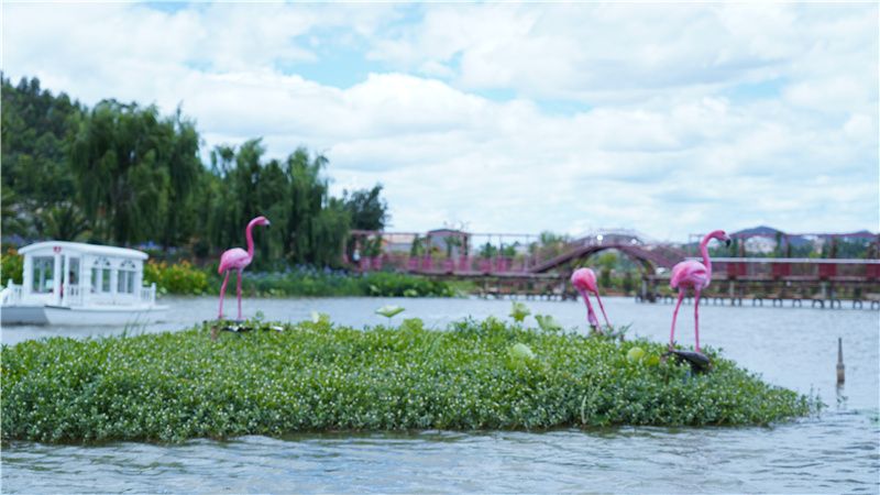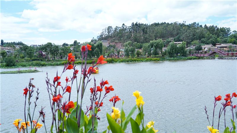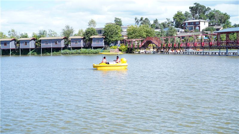 楚源乡生态园距楚雄城区仅有不到半小时的车程,是楚雄城郊休闲度假的网红打卡点。走进生态园,映入眼帘的是波光粼粼的湖面、五颜六色的鲜花和山清水秀的田园,游客们在这里赏花游玩、划船戏水,开启欢乐乡村游。