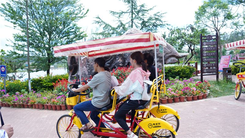 此外,双人和多人观光自行车设计新颖,车顶还安装凉棚。骑着观光自行车,一路欣赏田园美景,给你不一样的假日休闲之旅。