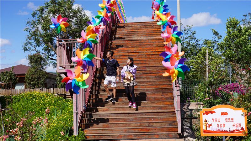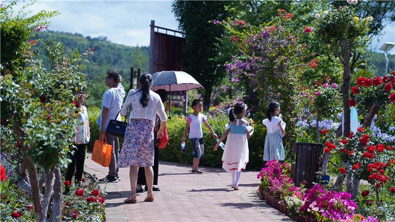花海周边建有观赏栈道、观赏亭,微风拂过,各色花朵嫣然摇动,在绿叶的陪衬下,如落入凡尘的仙子,美得不可方物。空气中飘着淡淡的花香,闻着就让人心情舒畅。