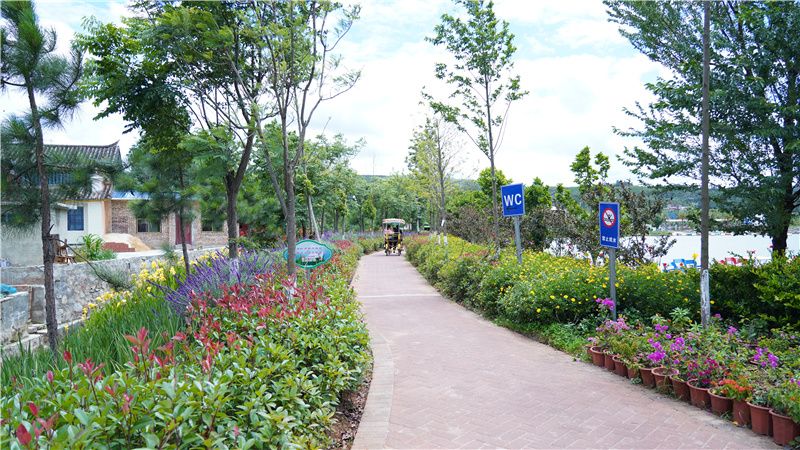 游客可以沿着花间小路尽情玩耍,整片花田就像画家浓墨重彩油画场景中的片片色块,与清澈湖面无缝相接,赏花的同时还能一睹湖光山色。