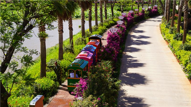 搭上公园的观光小火车,缓缓穿行在湖边花海中,穿行在绿色的田野间,聆听鸟语、呼吸芬芳,沿途将生态园的美景纳入眼底,很是惬意!