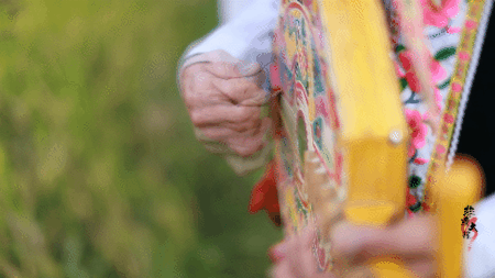 欲善其舞,必先了解其器,鸡街彝族大刀舞使用的刀具是春秋刀中的单刀,又称“关公刀”。刀头呈弯月形状,约长50厘米,刀柄以木材制成,与锄柄相似,长约1米。此刀两端配重均匀,找准其中的平衡点方能操控自如。大刀配以铜铃、扎花等装饰物,让原本的冰冷利器多了几分美感。