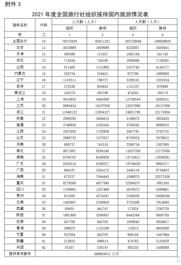 附件3. 2021年度全国旅行社组织接待国内旅游情况表