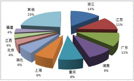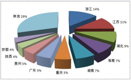 2021年度旅行社国内旅游组织人次排名前十位的地区由高到低依次为浙江、江苏、广东、湖南、重庆、上海、湖北、北京、江西、福建。(见图1)