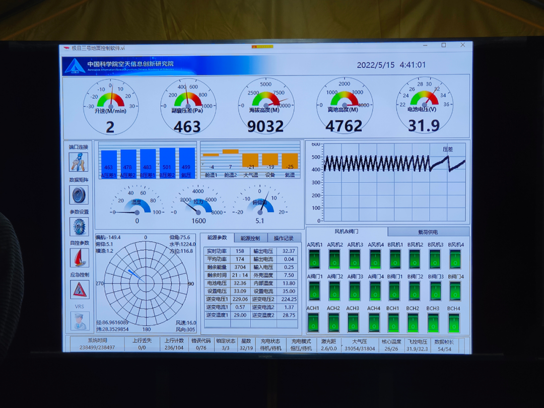 中国科学院空天信息创新研究院“极目一号”Ⅲ型浮空艇地面控制软件显示,浮空艇达到海拔9032米(5月15日 摄)。新华社记者 田金文 摄
