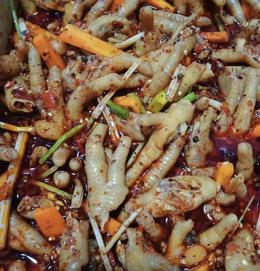 将木姜子、辣椒、酱油、柠檬、白糖等佐料,与煮熟冷却后的鸡脚、鸭脚、鸭胗、鸭翅等搅拌,腌制十分钟左右,酸辣爽口的木姜子鸡脚、鸭脚等凉菜便制作完成。炎炎夏日,啃上几只,真是提神解馋,暑意消散!