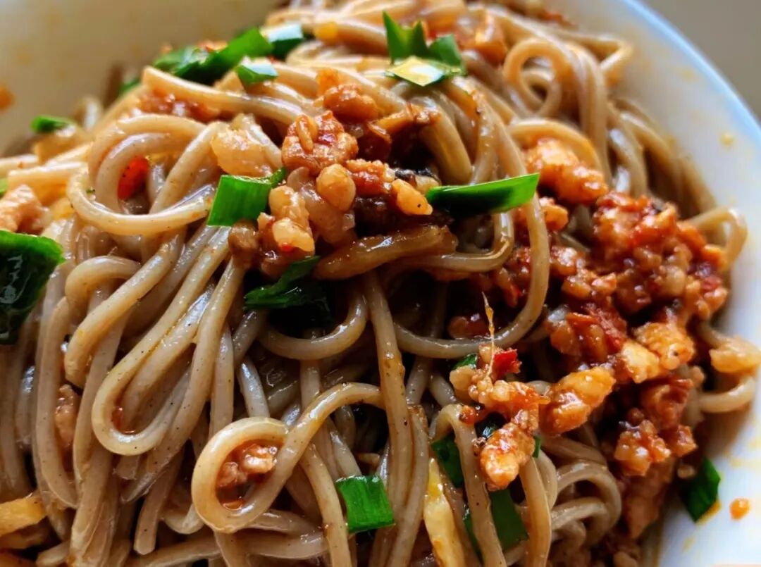 将新鲜采摘的木姜子油炸后,佐以老干妈、花生酱拌匀,味道香辣可口,既能当调味料,也能当一道菜品。把面条煮熟后,配上葱花、韭菜,再放上几勺这样的酱料一起搅拌,一碗简单的木姜子面条就做好了,美味可口,令人垂涎三尺。