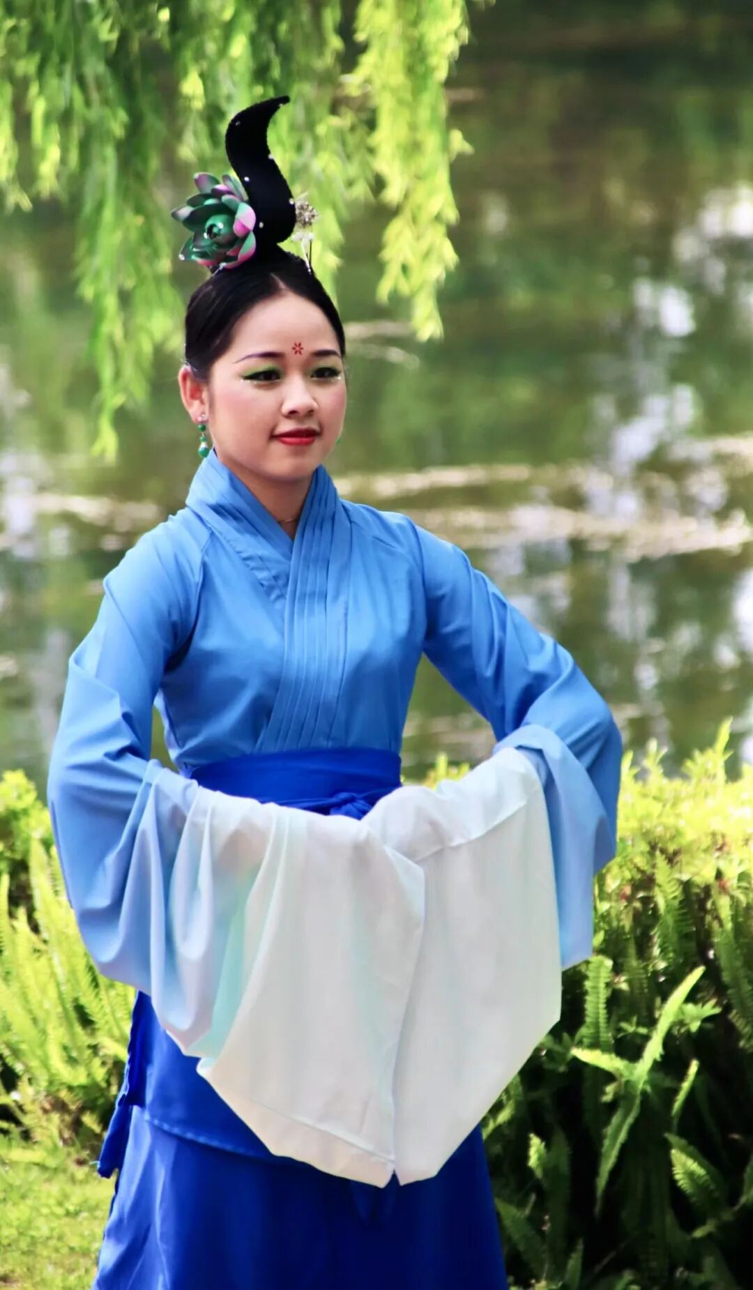 灵山秀水间,温婉的汉服佳人款步而来,身形曼妙,舞姿蹁跹,云鬓香绾,水袖扶风。
