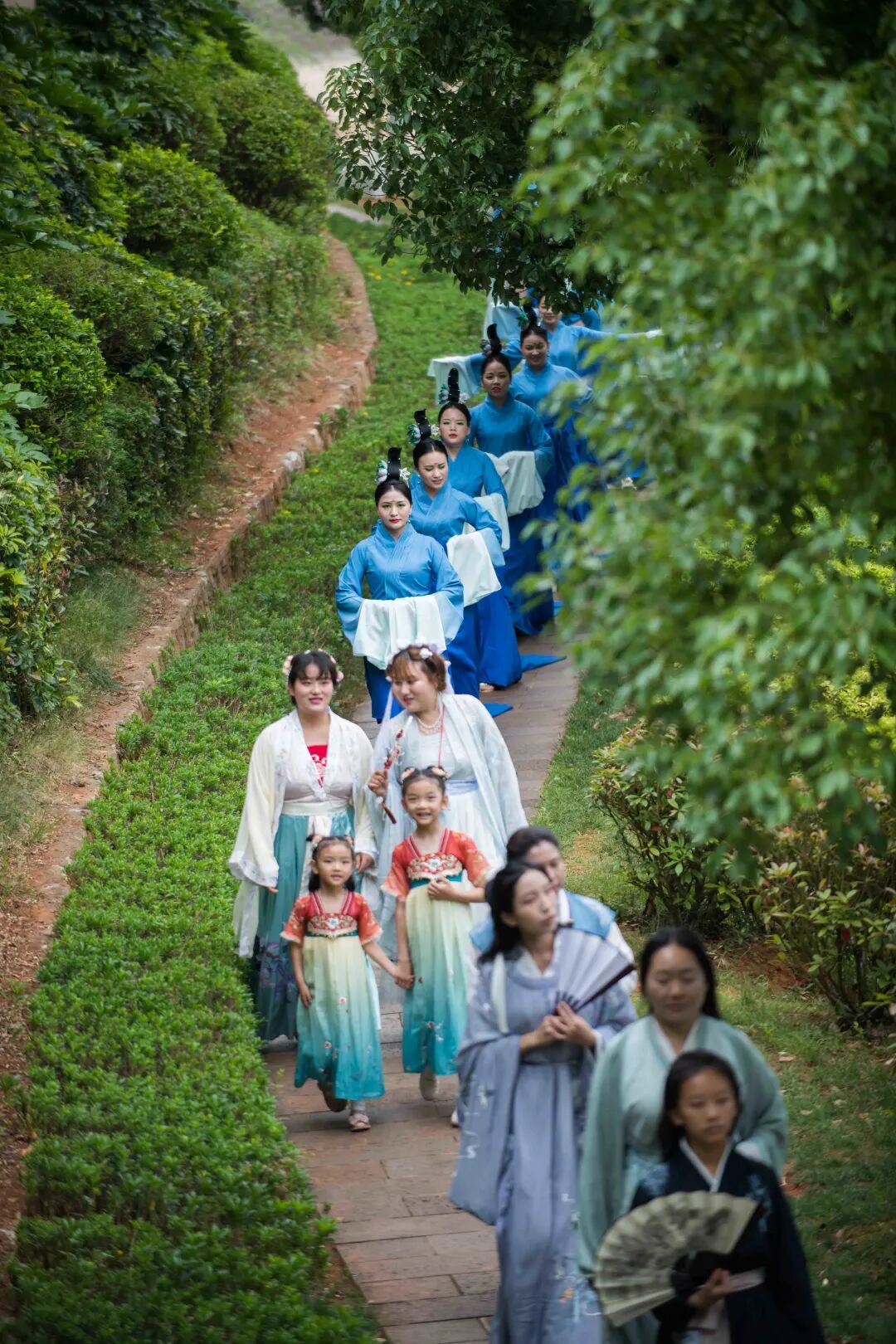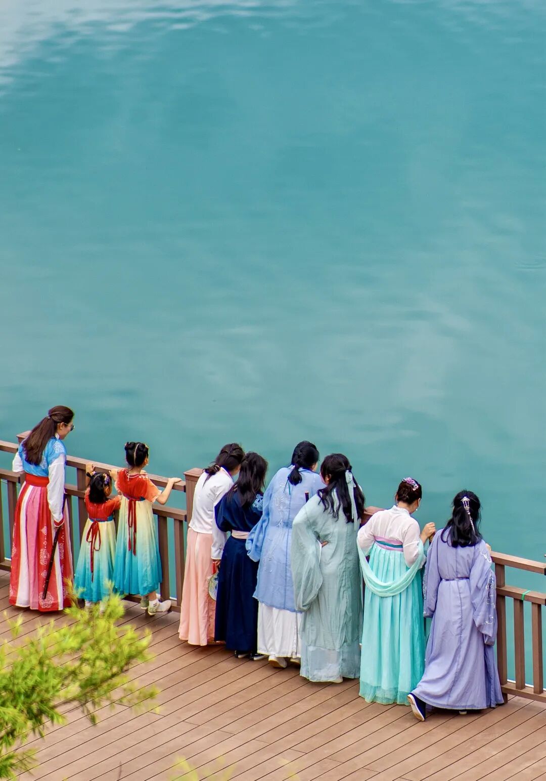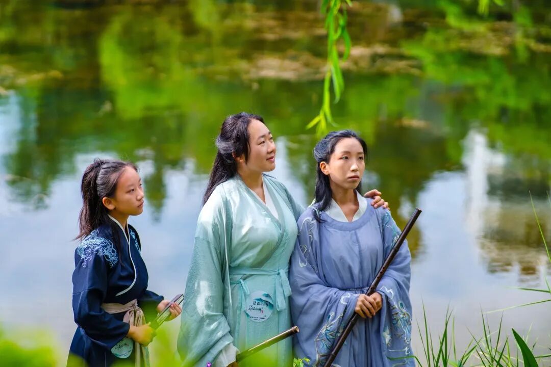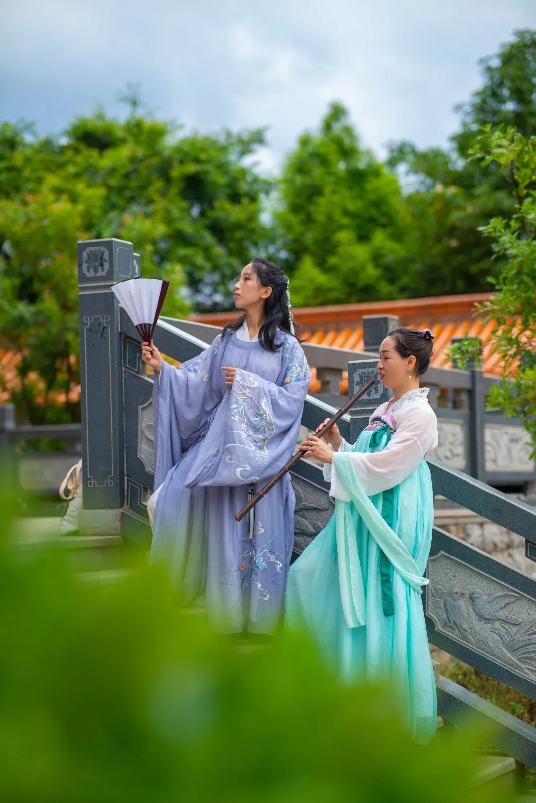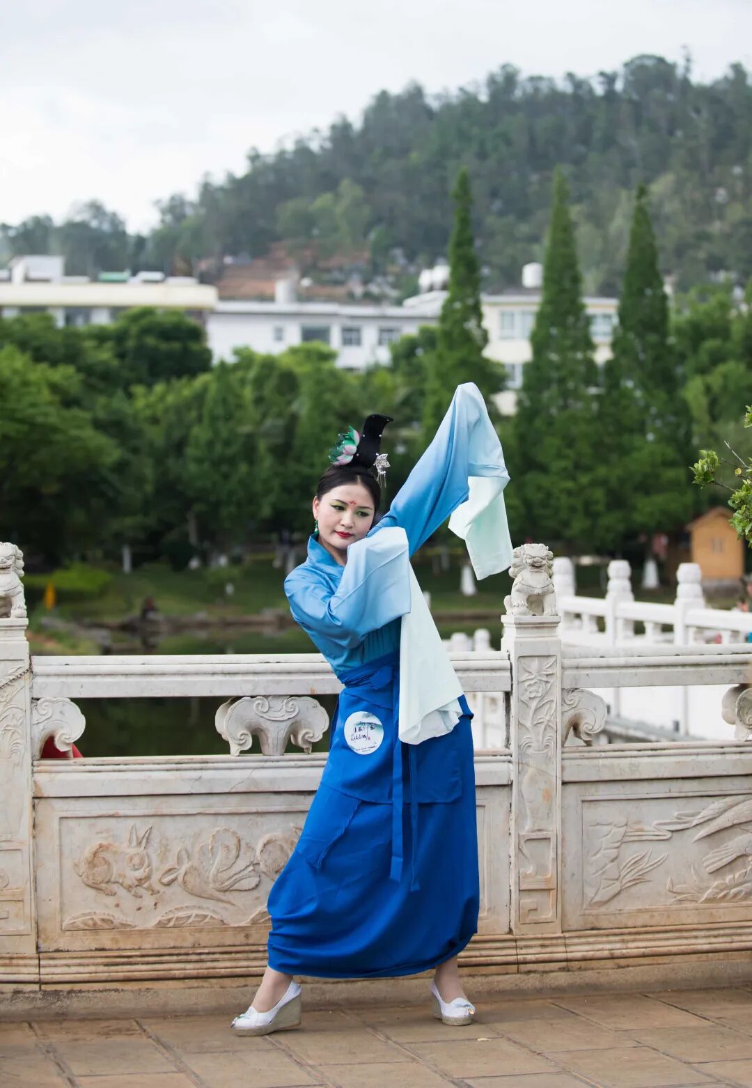 各式汉服虽形色各异,但神韵一脉,汉之素朴、唐之华美、宋之清雅、明之端庄,中华风骨在清丽的裙裾间流淌,绝代芳华搅动了水城初夏,惊艳了游人,也惊艳了时光。