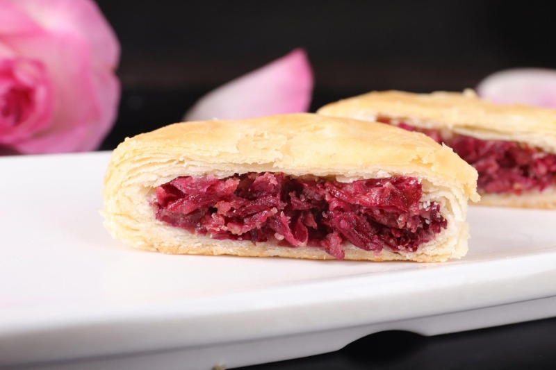 鲜花饼是一款以云南特有的食用玫瑰花入料的酥饼,是具有云南特色的云南经典点心代表。其酥脆香甜的口感,深受大众喜爱。也是来昆明旅游必备伴手礼之一。