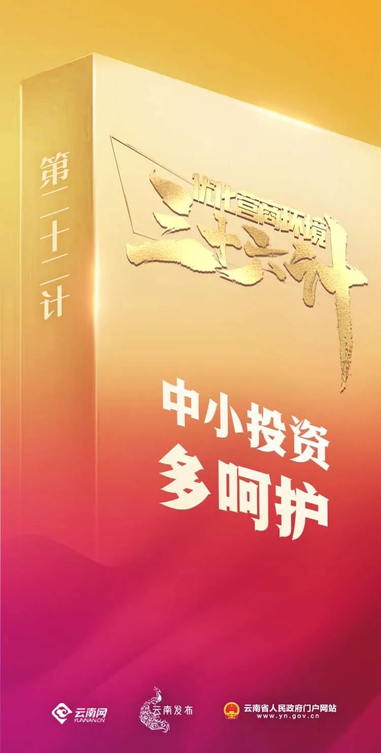 一流营商环境是第一竞争力。云南是后发展和欠发达地区,加快发展靠市场主体、靠项目支撑、靠招商引资、靠营商环境。省委要求,要坚持问题导向、目标导向,以市场评价为第一评价、以企业感受为第一标尺,大力实施作风革命、效能革命,优化服务、破解难题,构建亲清政商关系、营造亲商重商尊商浓厚氛围,建设国内一流营商环境。云南网联合“云南发布”“云南省人民政府门户网站”推出“优化营商环境三十六计”专栏,聚焦近年国内各地大力推进营商环境建设的生动实践,“阅览”新经验,“点睛”好做法,“案”授“新计”,助力云南经济高质量跨越式发展。