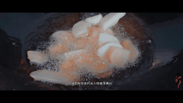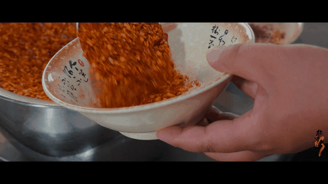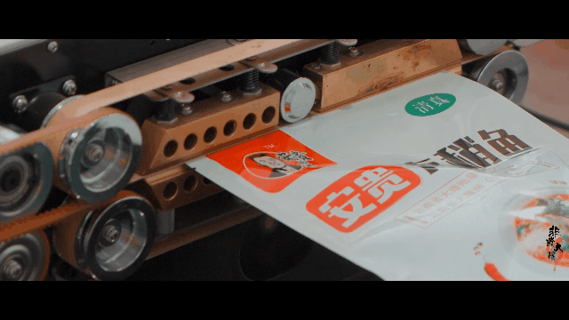 先炒十分钟的芝麻,表面金黄后接着放花生,最后才倒入辣椒面,等材料都放齐之后,大锅接着翻炒十五分钟就可以出锅倒入盆中冷却。冷却之后的底料要进行油渣分离,安金淼尝试过不进行油渣分离的包装,但底料混合得并不均匀,影响口味,为了确保每一袋底料都能还原出店里现煮海稍鱼的口味,安金淼又加大了投资,购买了能进行油渣分离包装的机器。