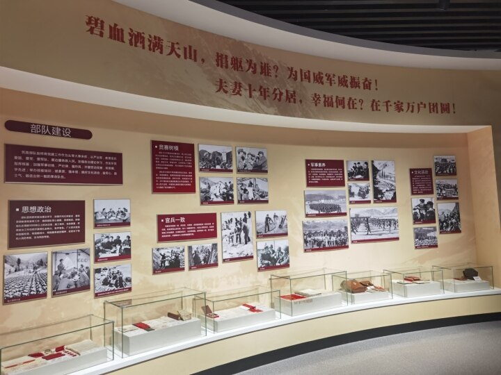 (克拉玛依市独库公路博物馆内的图文展墙及玻璃展柜 王思超 摄)