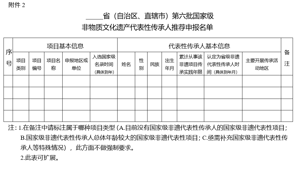 2.第六批国家级非物质文化遗产代表性传承人推荐申报名单