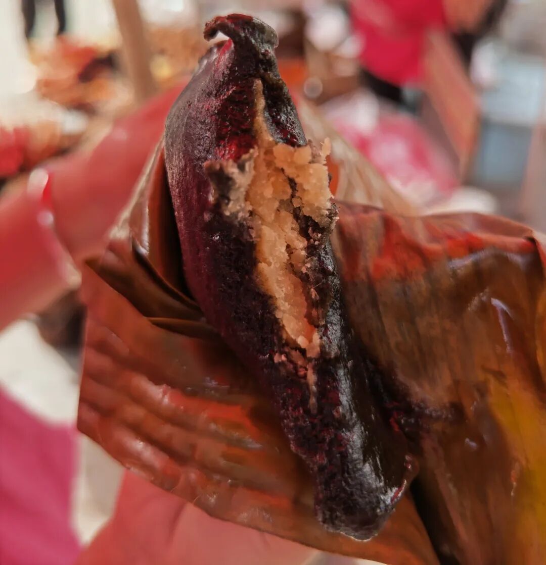 拿到手里的黑粑粑柔柔软软的,阵阵清香扑鼻而来,慢慢打开一看粑粑的颜色真的是黑绿色的,迫不及待咬了一口就停不下来。糯米香甜柔软,里面的馅在嘴里散开,绵密丝滑、香气逼人、甜而不腻,几种香味碰撞在一起发生了意想不到的惊喜,无论是早餐还是解馋的小零食,吃上这样一块真的让人很满足。