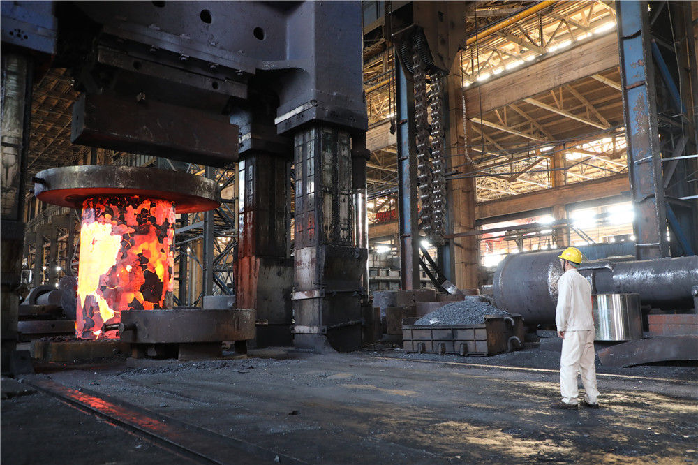 在中国一重集团有限公司,工人在车间内忙碌(5月19日摄)。新华社记者 唐铁富 摄
