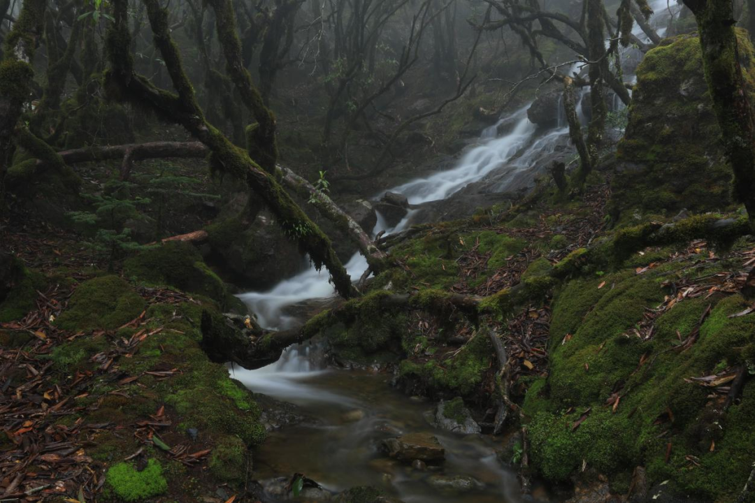 溪流旁是不知几时穿上绿衣的青苔