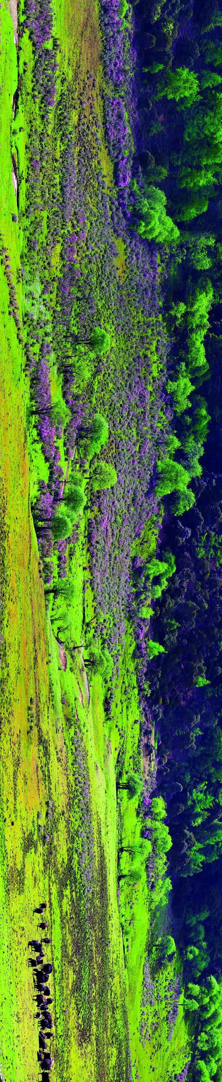 山川碧绿,水草丰美,花满山,牛羊成群,悠自在……宛如仙境