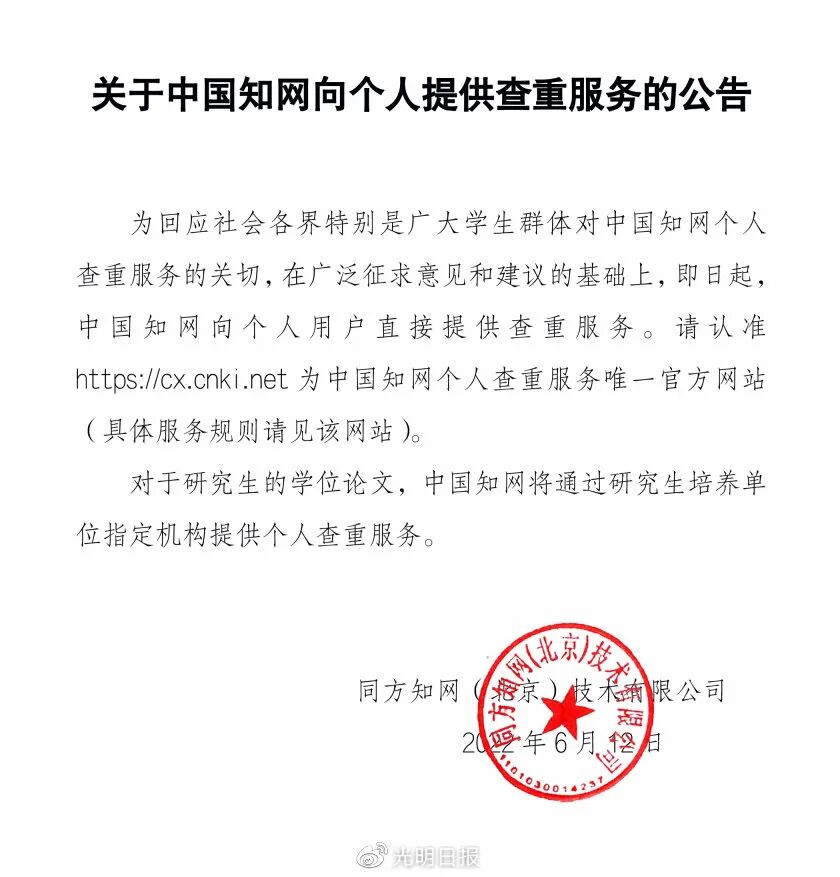 一、知网曾发布公告表示,查重“只可用于机构的管理流程”,“从不向任何个人销售”。现在开放此项服务的原因和目的是什么?