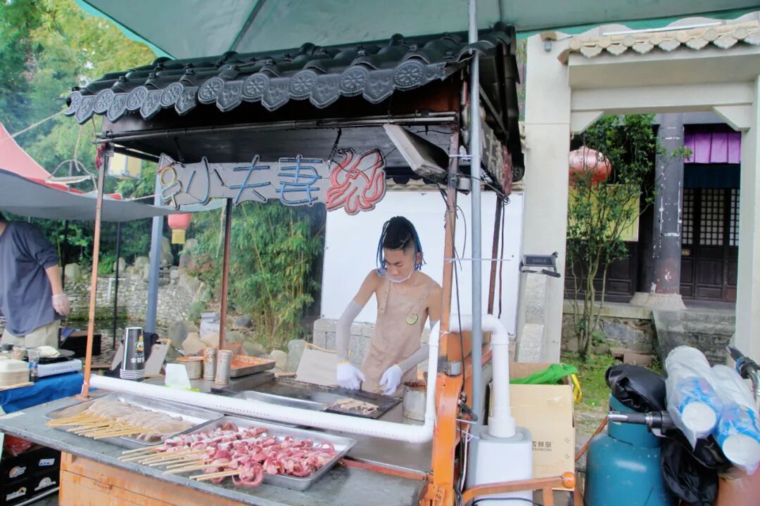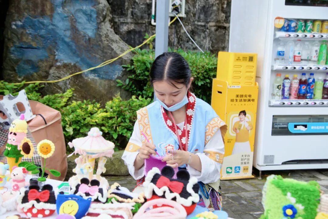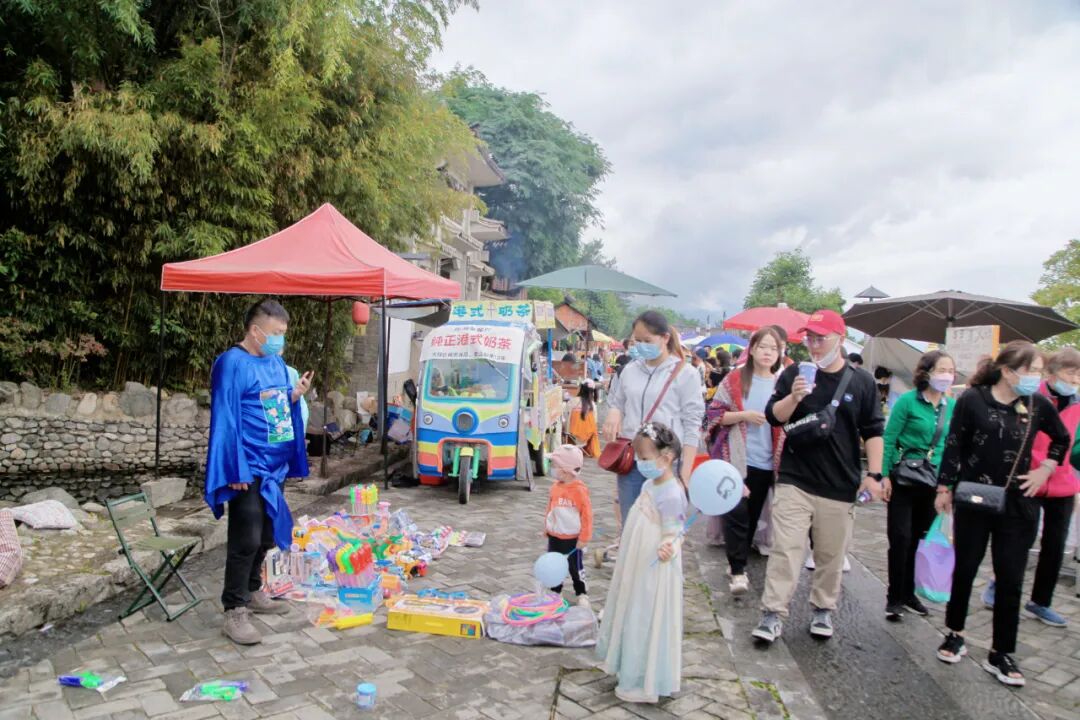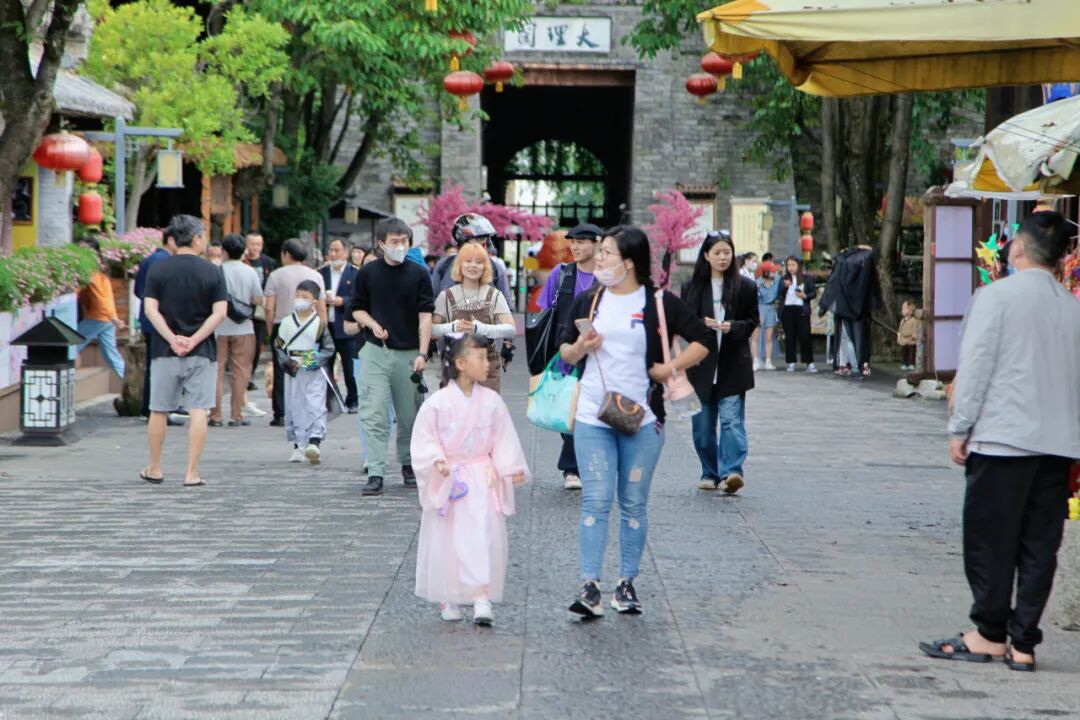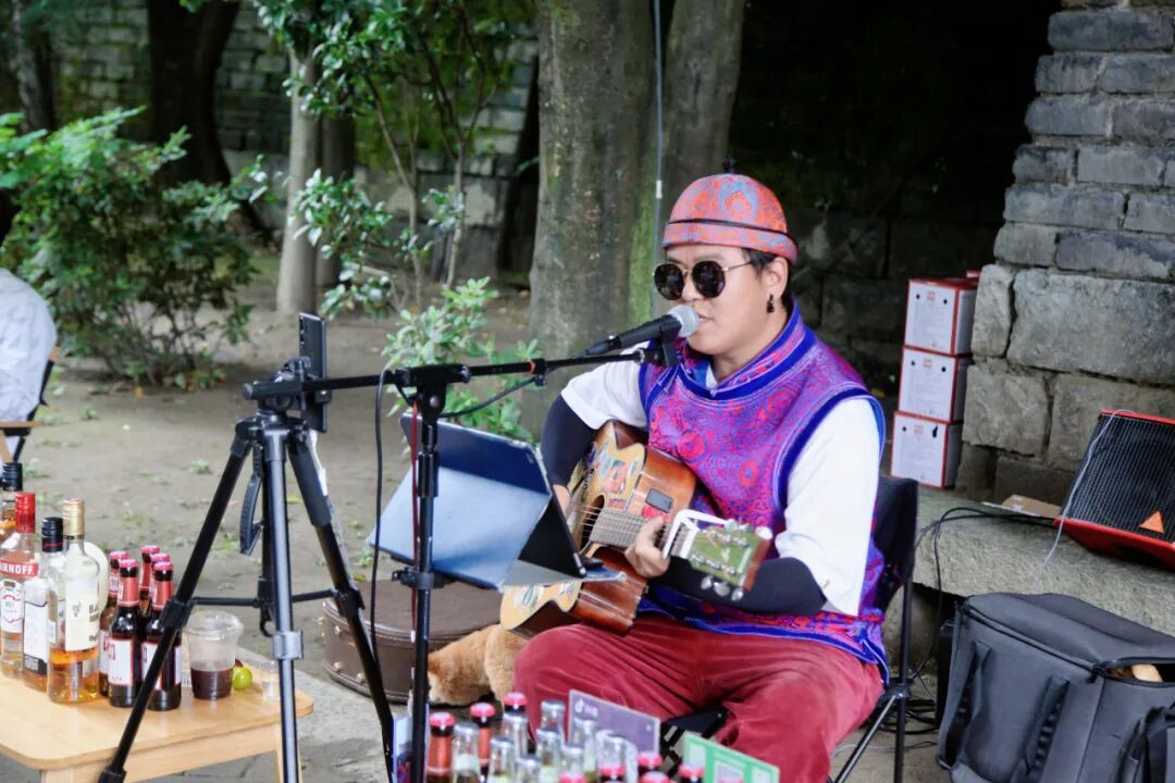 景区入口处,驻唱歌手的摊位前,一首首娓娓道来的民谣,也让大家不自觉地停留。