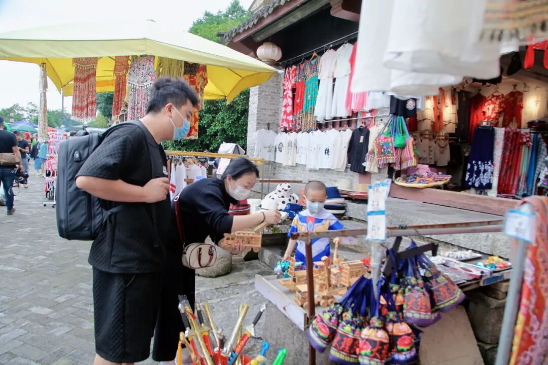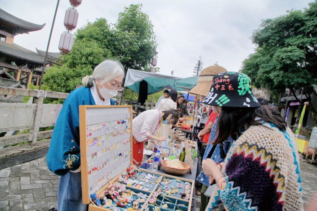 近300位手工、美食、复古、创意摊主齐聚于此,国潮风融入景区的角角落落。