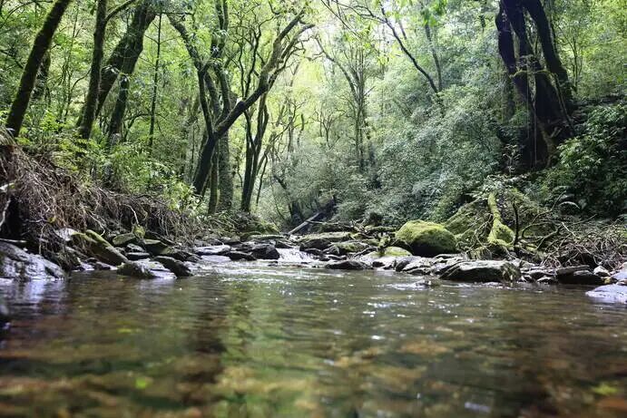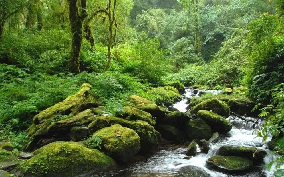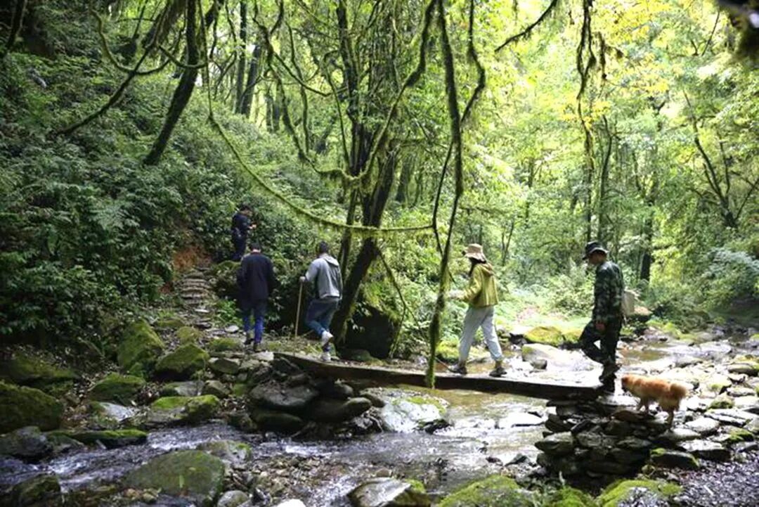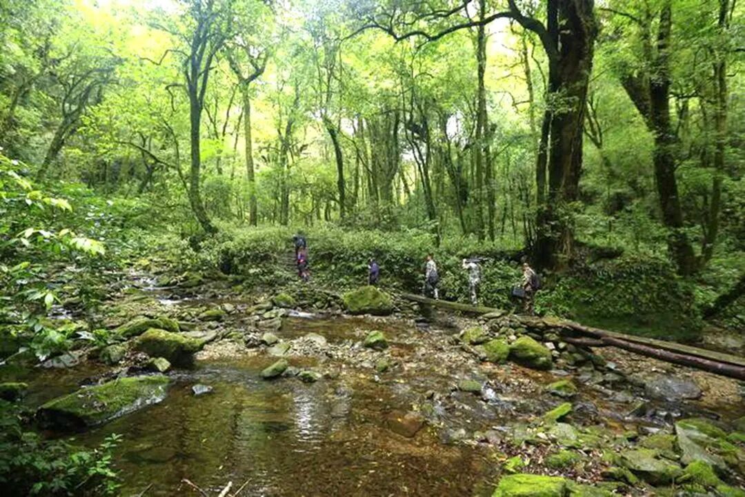 站在山巅,鸟瞰远方,群山连绵,着实妖娆。往山里走去,路上的石板长满了青苔,脚下的嘟噜河一直贯穿密林深处,带着人们向原始森林里走去。