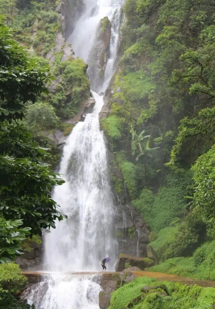 尤其是“大吊水”瀑布和“小吊水”瀑布,飞流在山间几经跌落,像脱缰的野马呼啸着奔腾而下,声震峡谷,水雾腾腾,令人叹为观止。