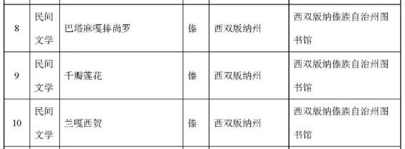 6月16日,云南省文化和旅游厅公示了第五批省级非物质文化遗产代表性项目名录推荐项目名单,推荐项目204项。西双版纳州共18个项目入选名单,其中新入选项目8项,扩展项目10项。