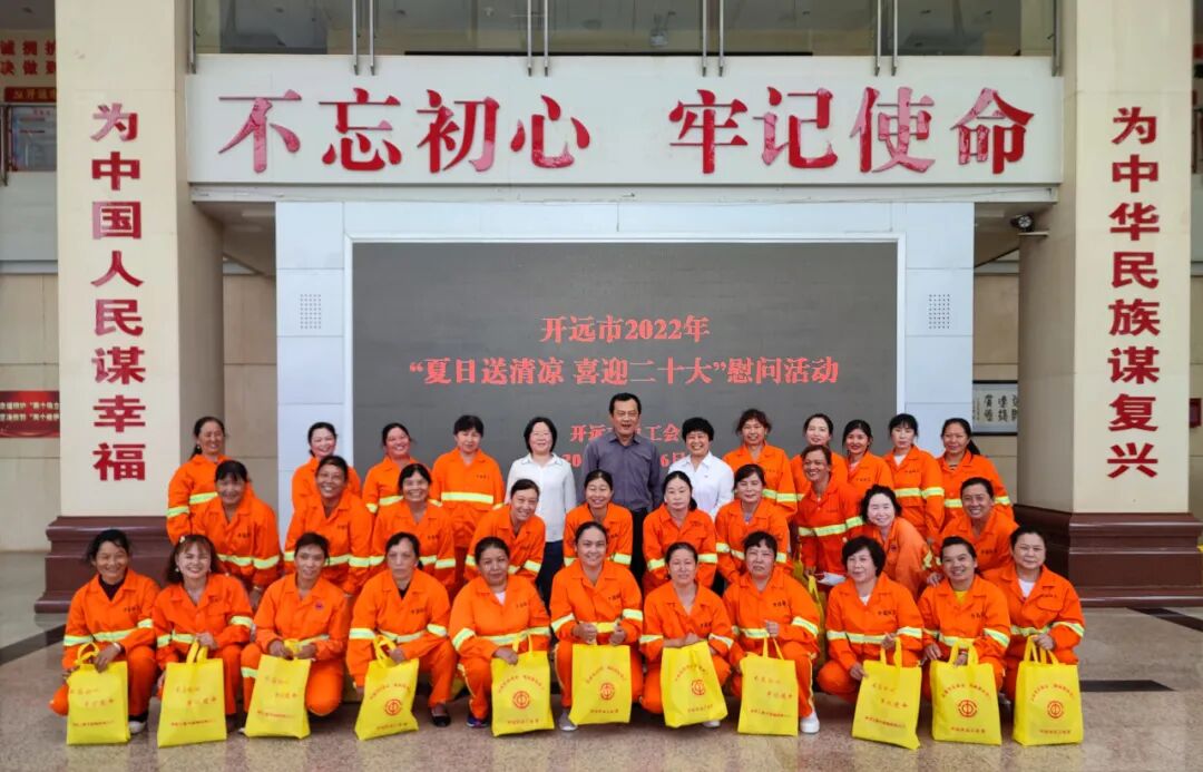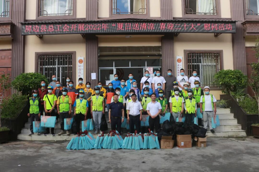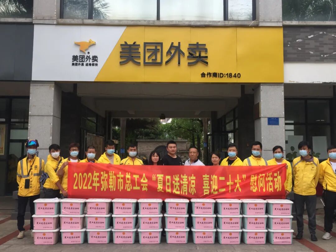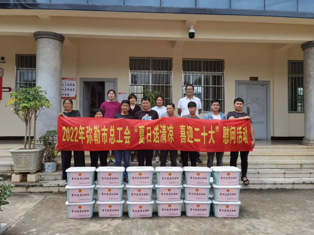 为迎接党的二十大胜利召开,深入推进全州工会送温暖活动常态化、多元化,切实将州委、州政府的温暖关怀及时送到一线职工的心坎上,红河州总工会组织全州工会于5月至6月期间,集中开展“夏日送清凉 喜迎二十大”慰问活动,对重大项目、重点工程的一线参建职工和长期从事户外劳动和高温作业的一线职工开展慰问活动。
