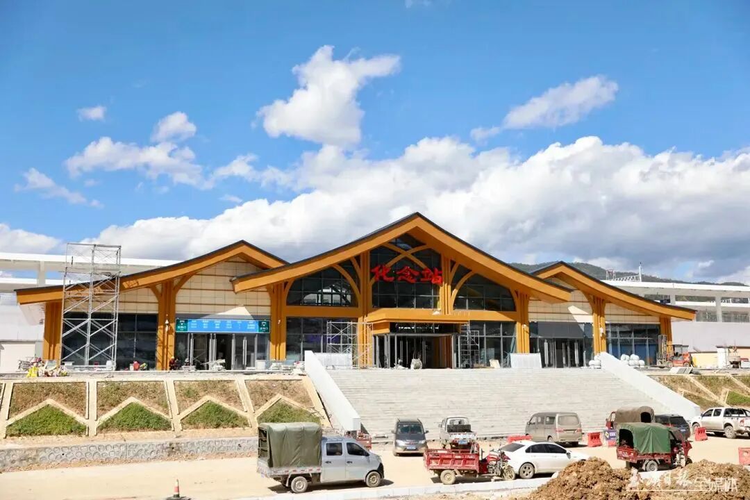 位于峨山彝族自治县化念镇的化念站,是一座融合了当地民族特色和山水风光的现代化车站。距离化念站不到6公里,投资200亿元的玉昆集团产能置换升级改造项目正火热建设中。随着项目的建成投产,化念将成为支撑国际国内两个市场物流仓储的重要枢纽。