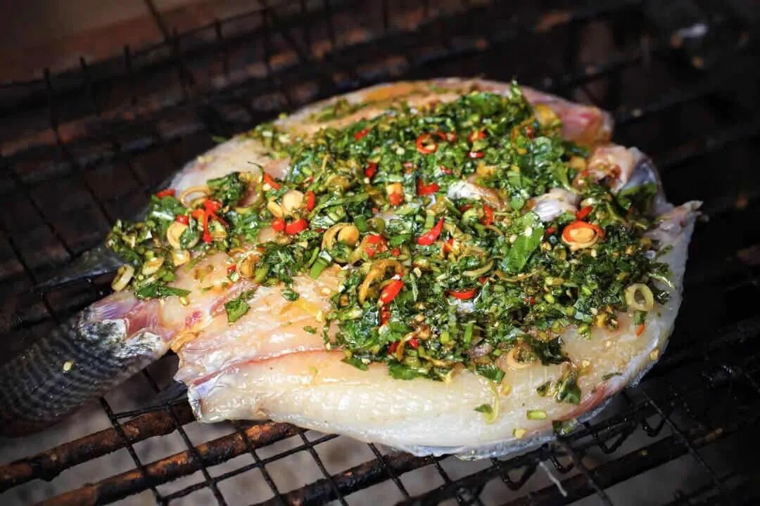 一把小串,一条烤鱼,配上一些应季时蔬,再约三五好友在烧烤摊把酒言欢,西双版纳的夜晚就此开启。既然到了西双版纳,傣味烧烤中的经典食材——柠檬罗非鱼、香茅草烤鱼也是首选。这里的烤鱼因刺少、肉肥美等特点深受人们的喜爱,经由炭火炙烤的罗非鱼肉质鲜美,鱼皮脆糯,在芫荽、香茅草等配料的点缀下,香味扑鼻而来,蘸上一点灵魂酸辣蘸料能给舌尖带来无尽的幸福感。除此之外、烤大虾、牛肉串、金针菇、烤茄子、芭蕉花等烧烤食材也深受好评。