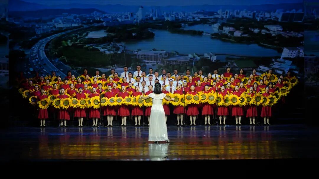 在“走向复兴”的乐章中,《祖国颂》《茶香一杯情谊浓》《中国抗疫战歌》《龙的传人》《领航》等歌曲表达了对党、对祖国的无限热爱,更加激发了全市广大党员干部和各族人民群众爱党、爱国,努力建设美丽、幸福新临沧的无穷力量。一首颂歌,一段历史;一首颂歌,一面旗帜。大家用嘹亮的歌声颂扬中国共产党的光辉历史,抒发人民对党的炽热情怀,唱出了临沧人民的风采,唱出了临沧儿女爱党爱国的真挚情怀,让全场的每个人热血沸腾,心潮澎湃。
