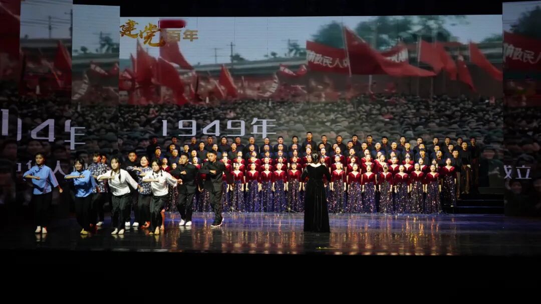 晚会分为“峥嵘岁月”“不忘初心”“迈向辉煌”“走向复兴”四个乐章。晚会在《历程、使命》的深情演绎中拉开序幕,在歌声中回顾百年沧桑、追忆百年风雨,颂扬了中国共产党用金色的锤头开拓前程,用金色的镰刀收获希望的百年历程,以及新一代中华儿女赓续红色血脉、奋进社会主义现代化新征程的决心和斗志。在“峥嵘岁月”乐章中,《映山红》《我的祖国+太阳、红船》《集合在党旗下》《前进吧,中国共产党》……一首首扣人心弦的经典歌曲,一段段振奋人心的追梦故事,见证了穿越百年风雨,朝着胜利的方向,战无不胜的中国共产党,英勇奋斗,敢于担当,勇往直前,一路辉煌!