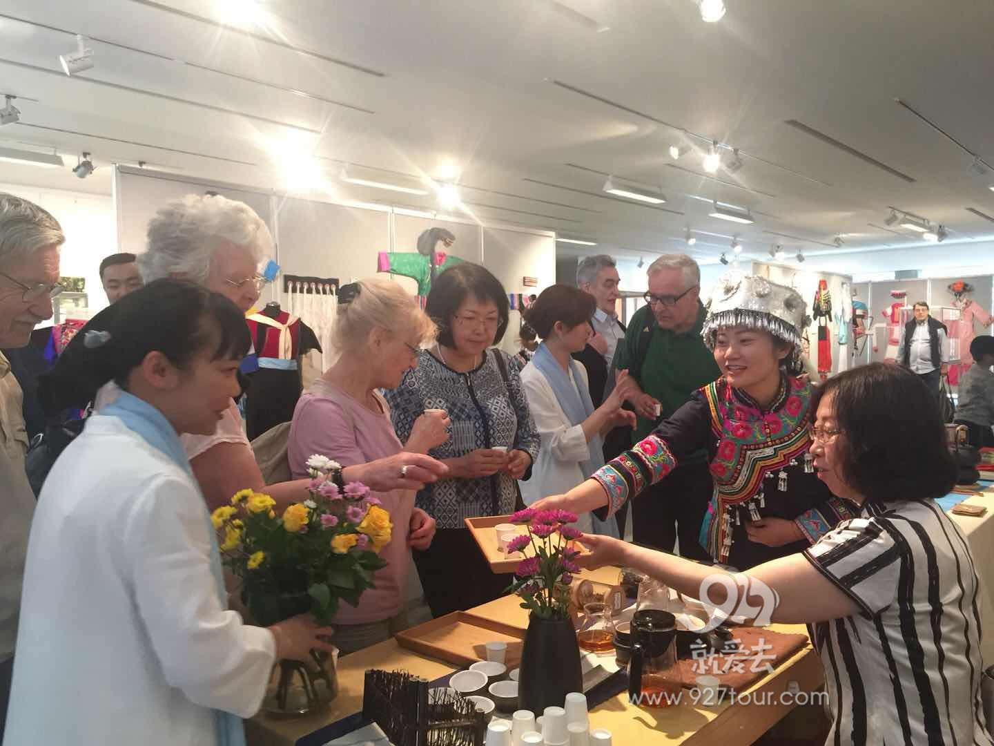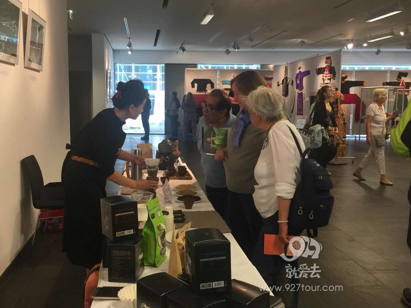 云南阿细跳月艺术团的非遗歌舞演出现场座无虚席、掌声不断,民族服饰展前人头涌动,滇红茶艺表演带大家感受了云南丰厚茶文化,朱苦拉咖啡研磨体验吸引众多德国朋友参与。
