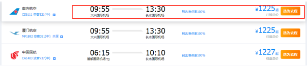 从行程看,北京至昆明出发时查询的往返机票价格为1225元。