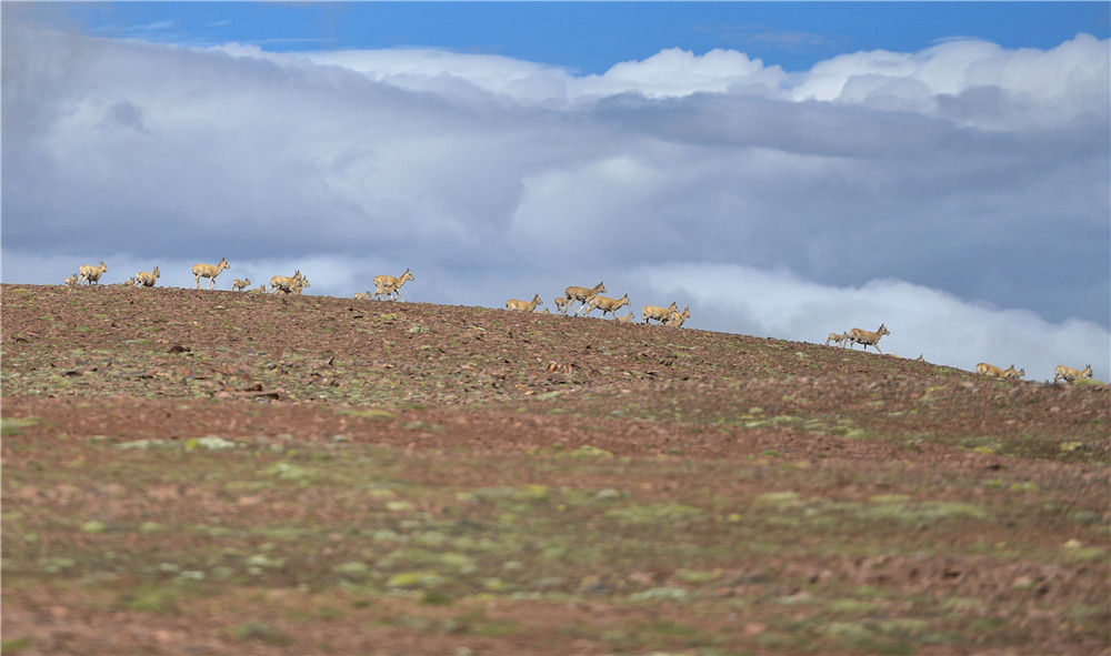 这是在可可西里卓乃湖区域拍摄的藏羚羊(2020年7月7日摄)。新华社记者 张龙 摄