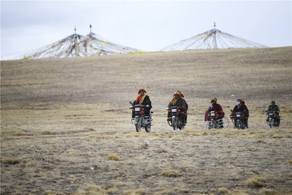 2022年4月21日,在青海省玉树藏族自治州曲麻莱县麻多乡约古宗列曲附近,生态管护员在巡护。约古宗列曲位于青海省玉树藏族自治州曲麻莱县麻多乡,这里是三江源国家公园的核心区。三江源国家公园在生态保护第一的前提下,建立“一户一岗”生态管护公益岗位机制,园区内每户有1名生态管护员,他们共同守护着一江清水。新华社记者 张龙 摄