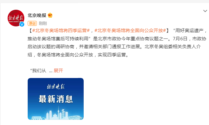 “用好奥运遗产,推动冬奥场馆赛后可持续利用”是北京市政协今年重点协商议题之一。7月6日,市政协启动该议题的调研协商,并邀请相关部门通报工作进展。北京冬奥组委相关负责人介绍,冬奥场馆将全面向公众开放,实现四季运营。