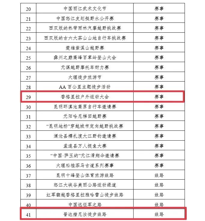 根据《云南省体育局办公室关于开展2022年云南省体育旅游精品项目和体育文化优秀项目申报工作的通知》,在各州、市教育体育局推荐申报基础上,经专家评审和综合评定,2022年云南省体育旅游精品项目和体育文化优秀项目入选名单已经确定,现向社会公示,公示期为5个工作日(2022年7月1日至7月7日),入选名单详见附件。